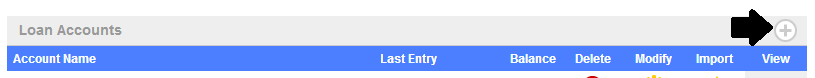 Go to your bank accounts, and press the “+” button to add a new loan account :