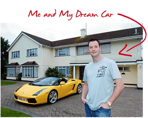 Me and my dream car … yes I’m just like you, dreaming of a yellow Ferrari … wrong again, I’m a scammer trying to persuade you that my scam is legit.