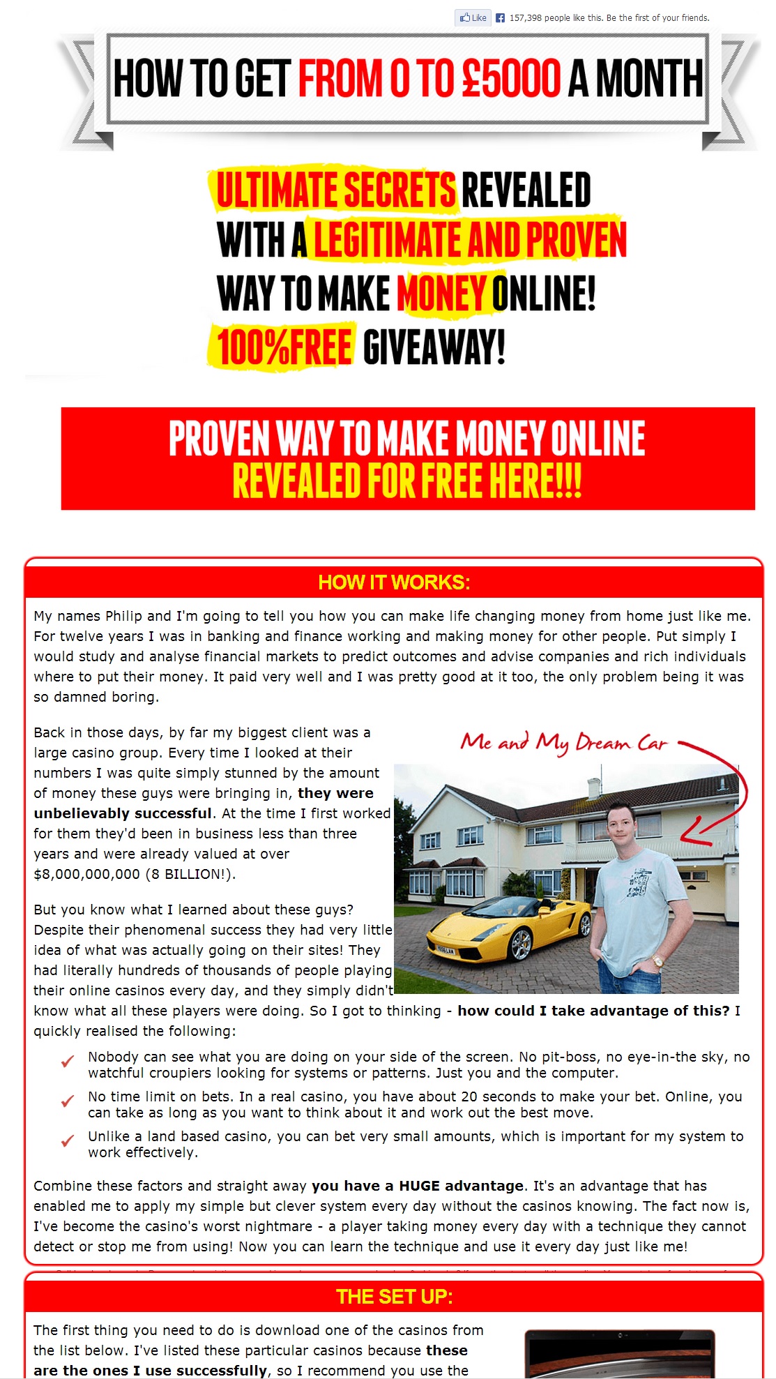 For the “I make money online” scam, I did really question why this guy would be giving away a £1200 per day secret, personally I’d have kept it quiet for fear of casinos finding out…was my first alarm bell I guess, but the real proof was that the numbers didn’t add up …