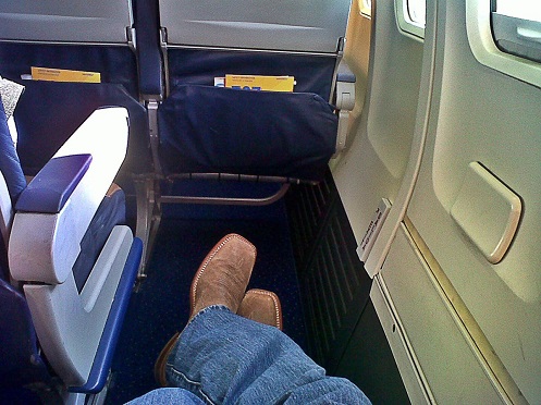 So I throw my blanket over me, kick off my shoes and try and get some rest. Then my second compromise arrives. Because I’m close to the bathroom, and there’s an exit door in front of me, and I’m on the aisle, the people waiting to use the bathroom seemed to think it’s a good idea to use MY legroom as their waiting area. After having had my toes trod on several times by morons, I concluded that extra legroom isn’t necessarily better, and probably would have been more comfortable elsewhere in an aisle seat.