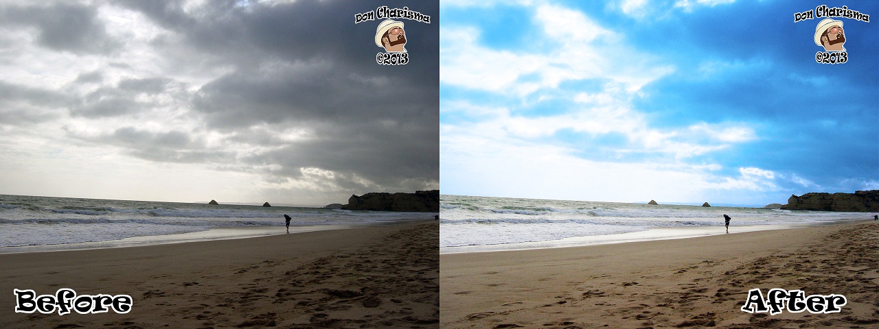 Note: In my before and after photo, more subtle blue skies are possible, but mine is very very blue to show the effect.
