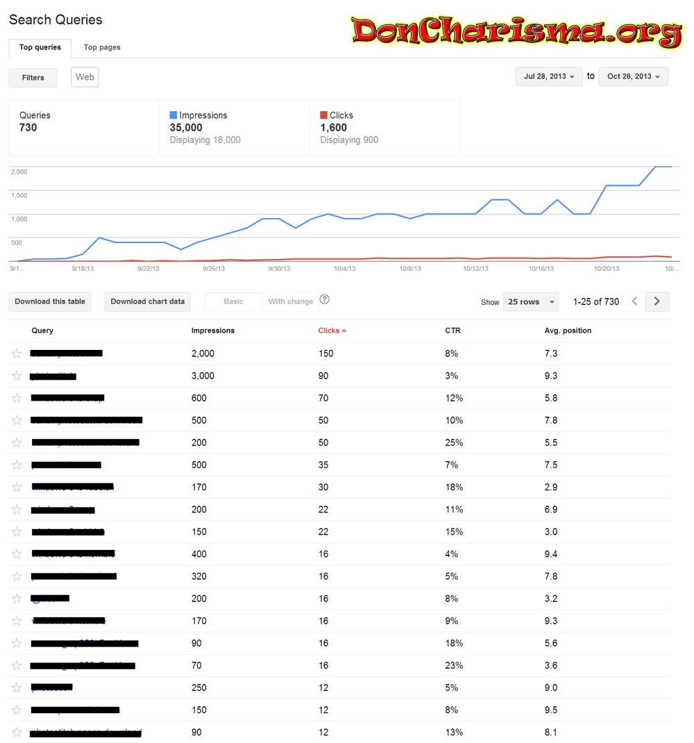 Never ever give up. Take a break, rest, have a sleep, have a holiday. But NEVER EVER GIVE UP on what your dreaming to do. Just keep at it, do the best you can, try, try, try. Persistence does pay off with Google and the success of your website or blog. I’ve been doing this now 5 months, added over 5000 followers and my daily impressions on Google are close to 2000. It wasn’t always like that as you can see from the graph I’ve included here (a few pictures above). It doesn’t even include the impressions and hits from before I bought my own domain DonCharisma.org, when it was still DonCharisma.wordpress.com
