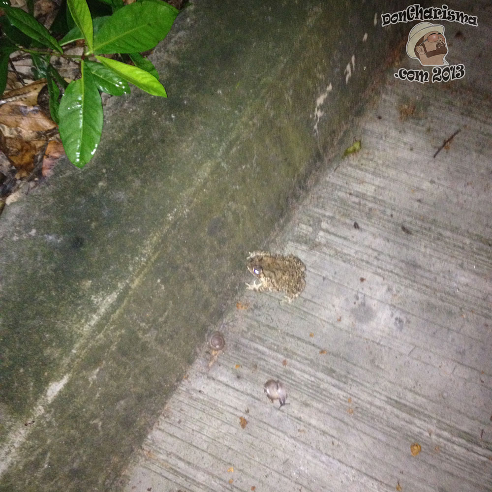 Can’t even remember what I said, I was more shocked than anything…at least it was a toad, my girlfriend told me to stay away from the 10 inch long millipede/centipede thing, apparently they sting!