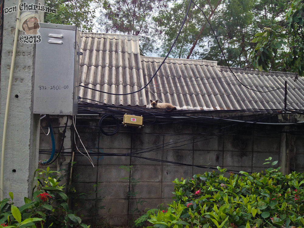 I like that pussy cat. Just hope she doesn’t get her front paws on the lines while the back ones are still on that roof top. Bye, bye kitty if she does. I’ve seen too many fried squirrels around town who didn’t learn that lesson.