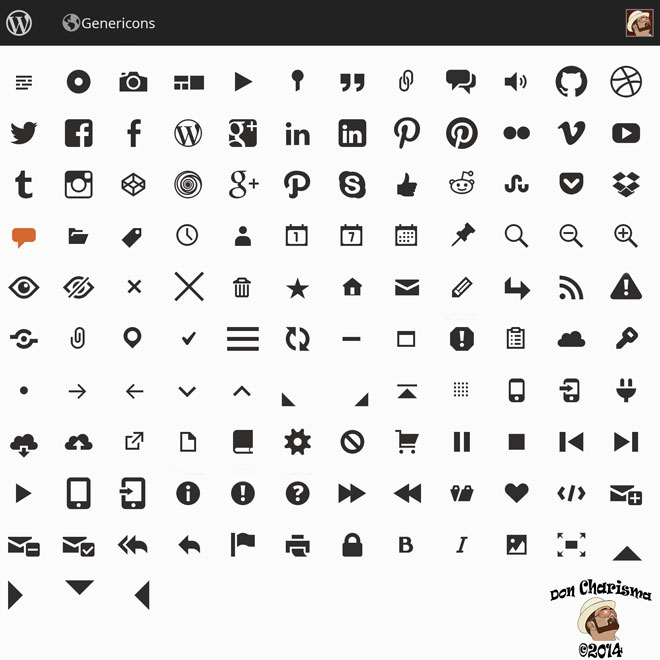 I don’t like to pay for things unless I have to. Serendipitously the documentation for my new theme made me aware of two free icon sets – Genericons (by Automattic the WordPress people) and another set called Entypo.