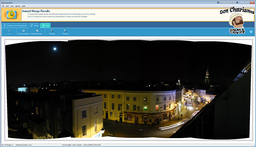 Cons – Not many, hard to find fault. Mostly little problem-ettes which make things take a little longer. It didn’t work as well as Photoshop for the parallel images, then nor did Canon Photostitch. Colour and tone sometimes a little off.