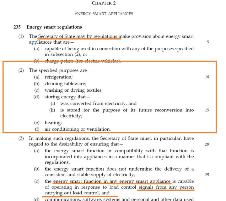 “Yesterday the UK State passed one of the most liberty crushing pieces of legislation in history under the Energy Bill. This is completely unreported by MSM and edgy UK “media” Talk TV etc. Under the Bill – the State will be able to FORCE people to get smart meters by end 2025 and will put smart meters into all major electric appliances (see grab), which can then be controlled externally. The have also opened the door to creating a offense with up to 1 year in prison for not complying with their energy performance certification regime.” – Source, A Telegram Channel.