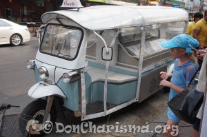 Annette – The Ice-Cream Tuk Tuk 8th September 2015 - I’m led to understand that this kind of vehicle is called a “tuk tuk” in Thailand … Annette sells ice cream from hers …