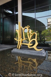 Gold Writing Water Feature #7393 5th October 2015 - How many dimensions can you see on this photo ? ... The spectacles are my favourite !