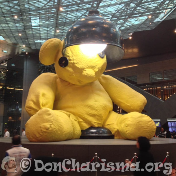 Something almost surreal about a 50 foot high teddy bear at the airport ! I guess not that many public structures are big enough to house … Continue reading Doha Airport Teddy Bear