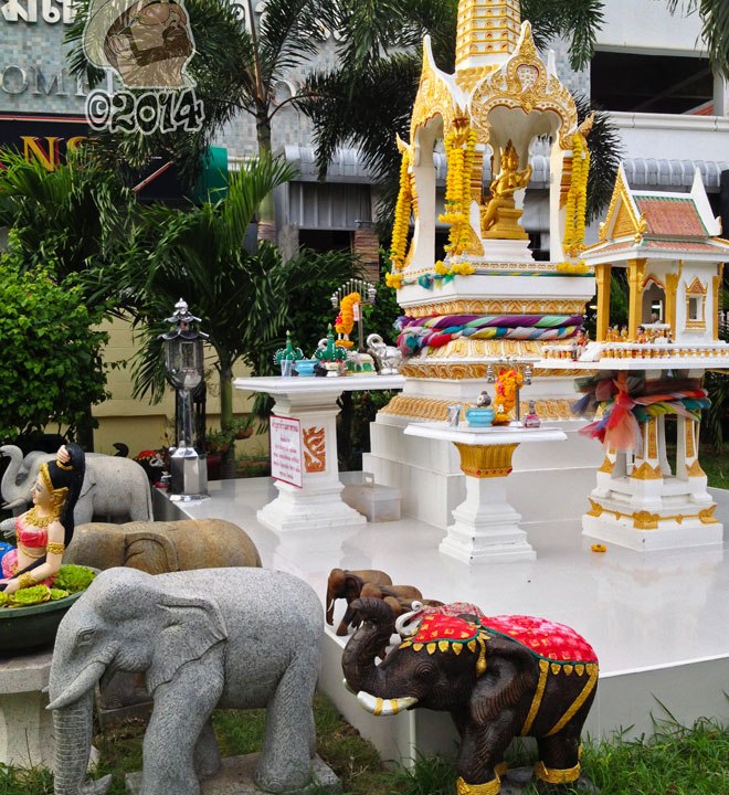 These little shrines are everywhere in Thailand. This one is one of the more ornate ones, I pass on my daily walk along the beach. Enjoy … Continue reading Thai Buddhist Shrine